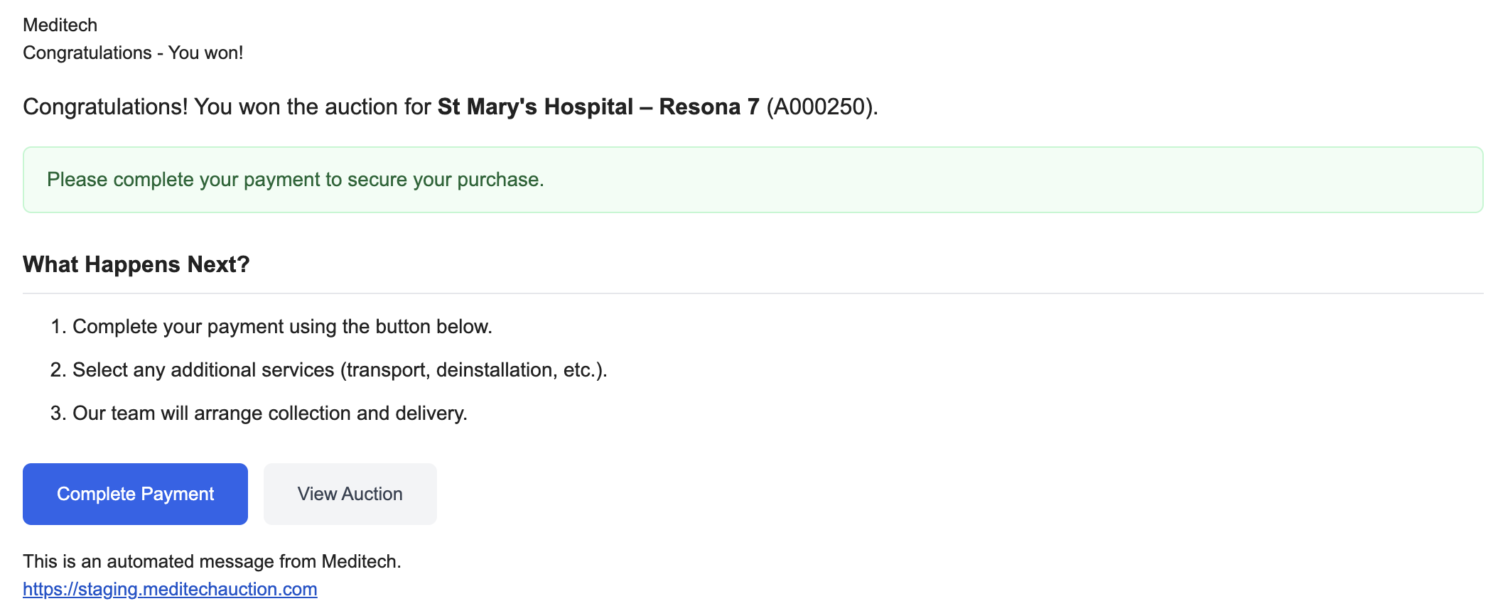 Congratulations on winning! Here's how to complete your purchase, arrange delivery, and track your order.