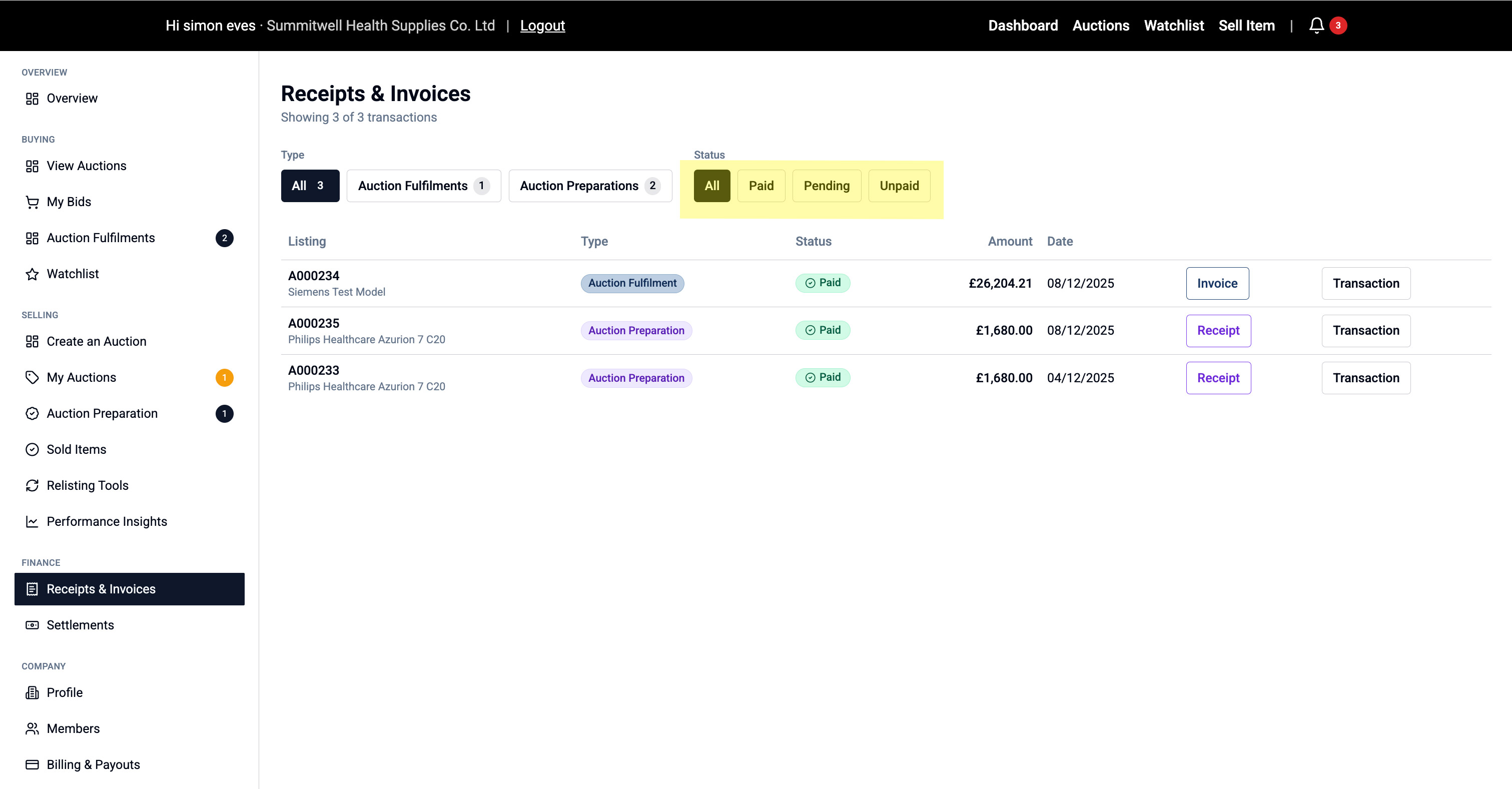 Access all your transaction documents in one place. Download receipts for purchases and invoices for services you've paid for.
